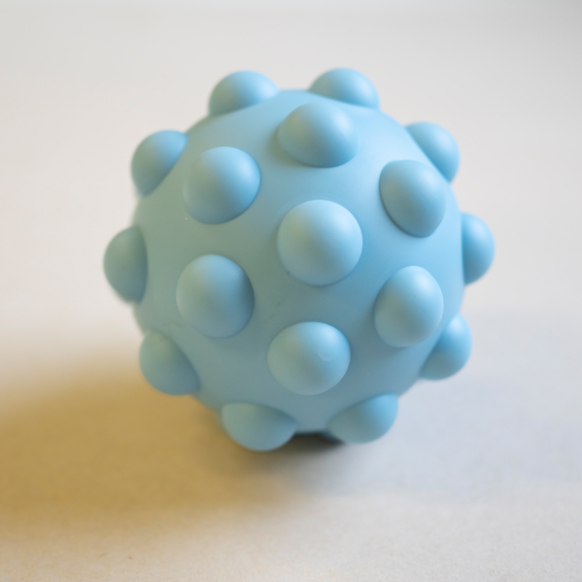 Den bløde silikone stimulerer finmotorikken, og gør det nemt at gribe fat om bolden. Med sjov pop fidget effekt, som gør det ekstra spændende at udforske bolden. Tryk let på knopperne, og se hvor mange der kan trykkes ind, inden de popper frem igen. Fantastisk stimulerende og udviklende for børn i alle aldre, samt for børn med særlige sansebehov. Bolden giver god træning i udviklingen af de motoriske færdigheder og stimulerer barnets forskellige udviklingstrin.