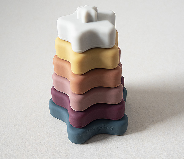 Super sødt stabeltårn produceret af 100% silikone i blød og lækker kvalitet. De 6 stykker i forskellige størrelser og farver, kan nemt dannes til et fint tårn når de stables ovenpå hinanden. De flotte farver og udformningen på stabeltårnet, stimulerer barnets sanser og finmotorik allerede fra 5. mdrs. alderen. CE godkendt.
