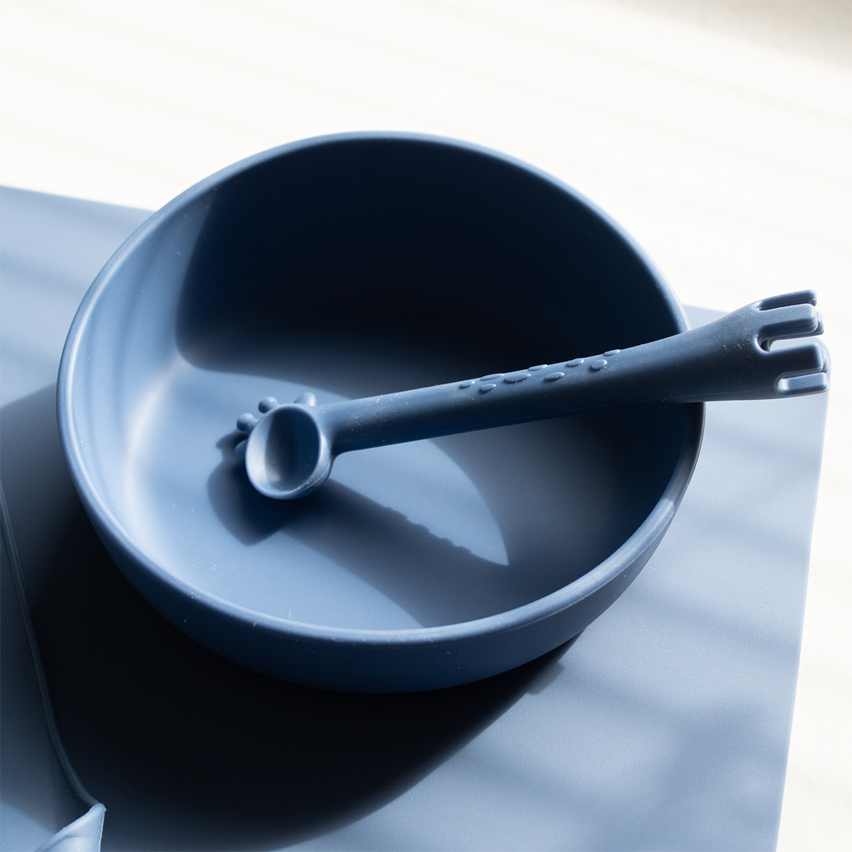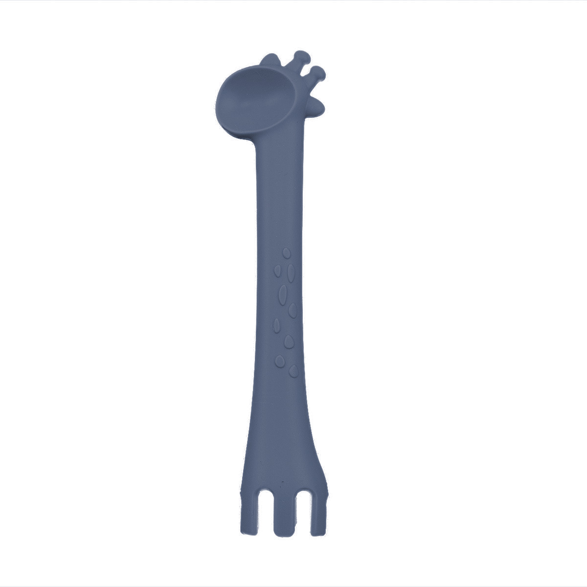Smart silikoneske med 2 i én funktion. Med integreret gribedel, så baby lærer at anvende gaffel. Produceret af 100% fødevaregodkendt silikone. Nænsom for tænder og gummer, samt hudvenlig så den ikke irriterer huden. Det lange skaft gør det nemt at holde fast om skeen, for både en voksen eller baby selv.